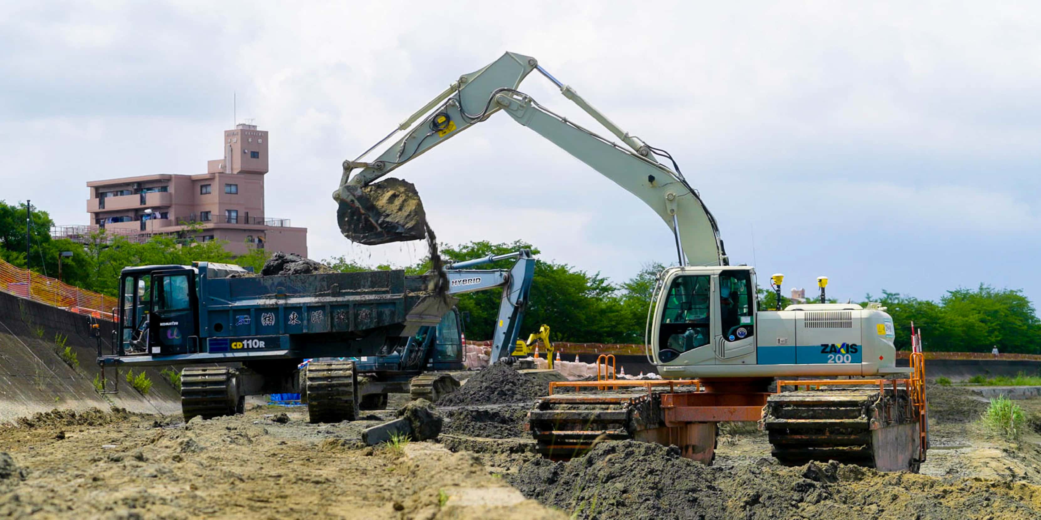 東洋技建が最も得意とするメイン事業です。大型現場の経験で培ったノウハウと、先端テクノロジー搭載のICT重機を駆使する技術力で、迅速に工事を遂行します。全国でも数少ない大型重機も導入(レンタル含む)。道路維持や災害対応、景観づくりなどを通じて、日本の社会資本の整備に貢献します。